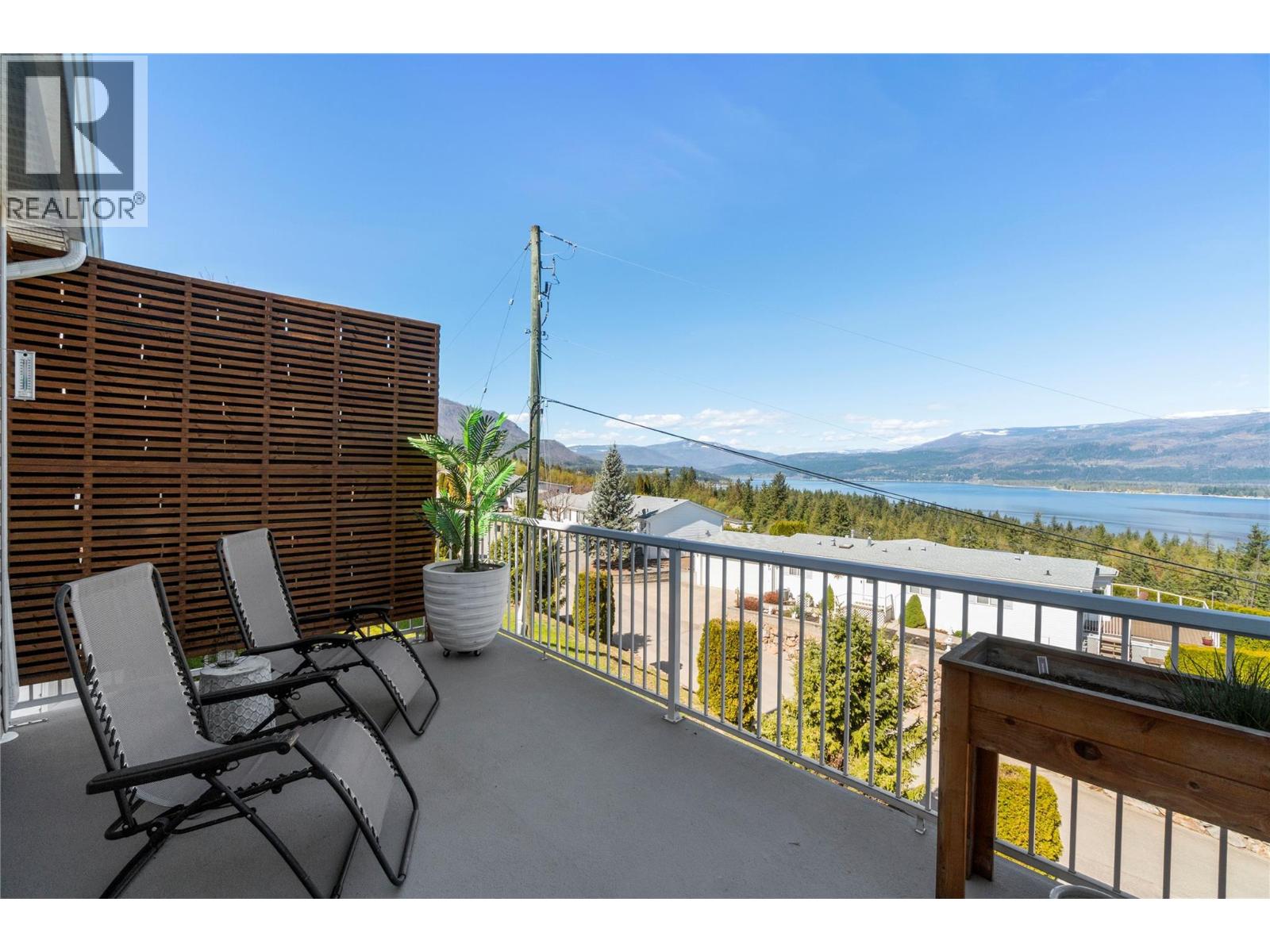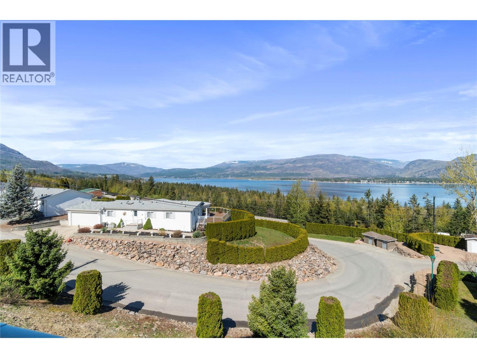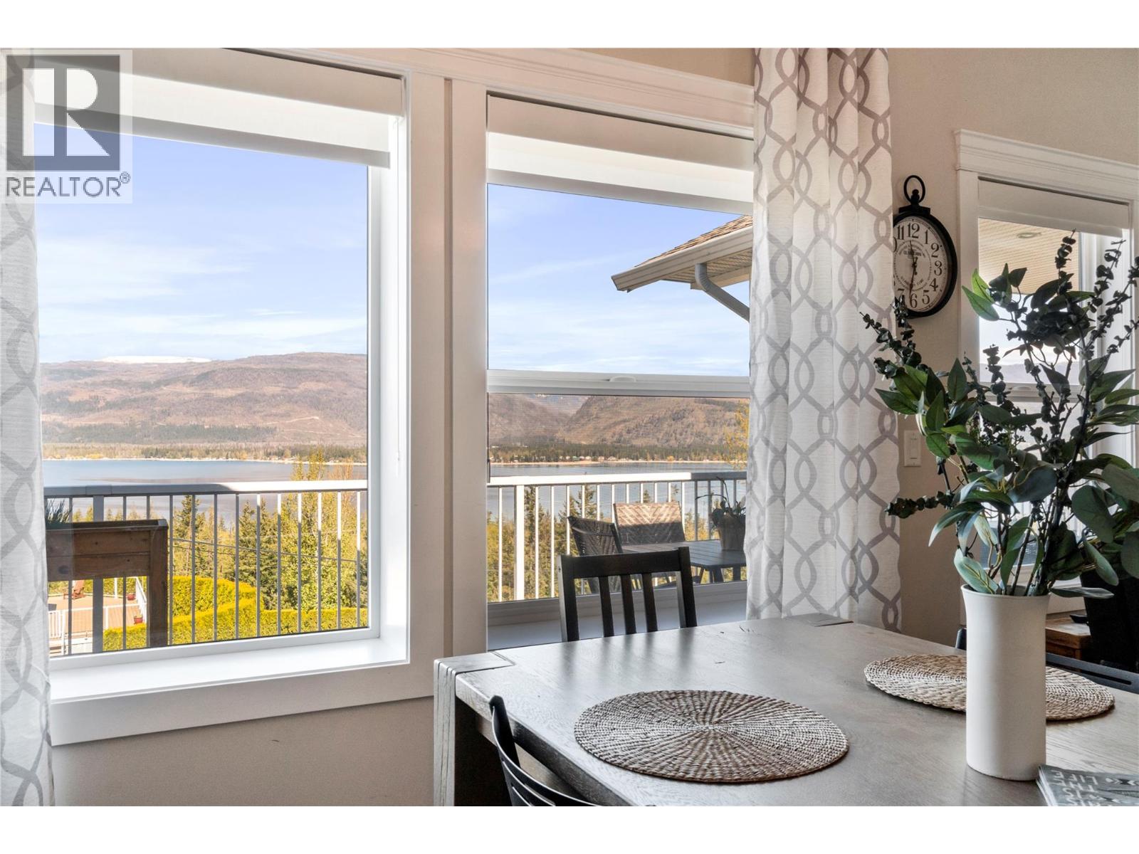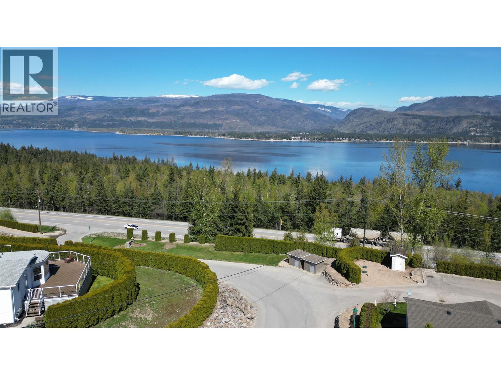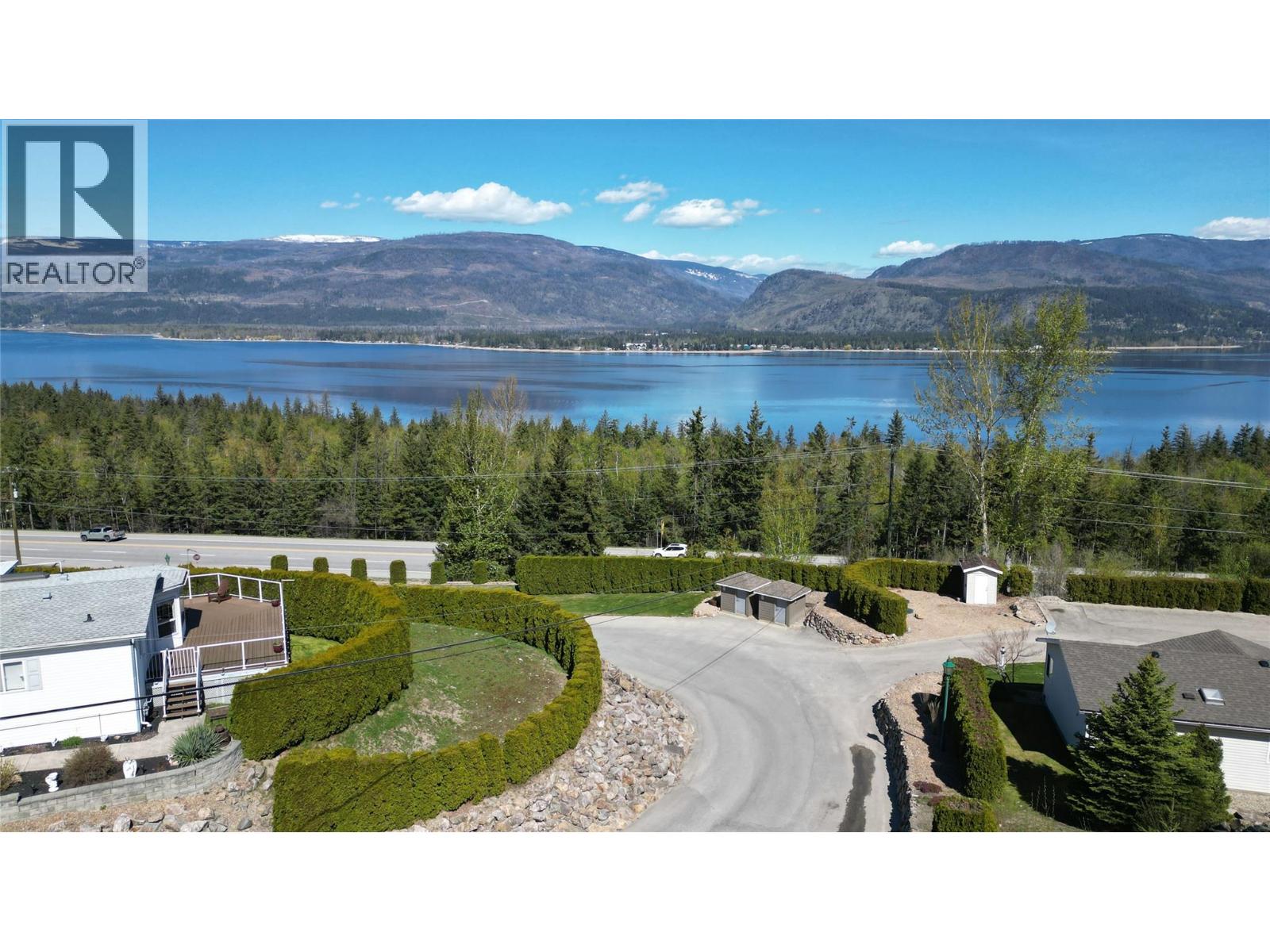 Breathtaking lake and mountain views from this meticulously maintained 2 bedroom, 2 bathroom modular home located in Sorrento's Deer Ridge Estates, a 55+ and quiet community. This home offers an excellent floorplan with bedrooms on opposite ends of the home and and open concept living room and kitchen. Enjoy your morning coffee on the large 50' wide partially-covered deck with panoramic views of Shuswap Lake. The spacious master bedroom features a full ensuite with a large walk-in glass shower. The bright kitchen is upgraded with stainless steel appliances, built-in microwave, and raised breakfast bar. The home, sitting on a full concrete crawl-space, is located on a quiet cul-de-sac and is just minutes from all necessities and recreation the Shuswap offers. Additional highlights include natural gas forced-air heating and air conditioning as well as a natural gas fire table on the deck, included in the sale. The 55+ park with friendly atmosphere allows pets, including dogs up to 10 kg (some restrictions apply). (id:25164)
