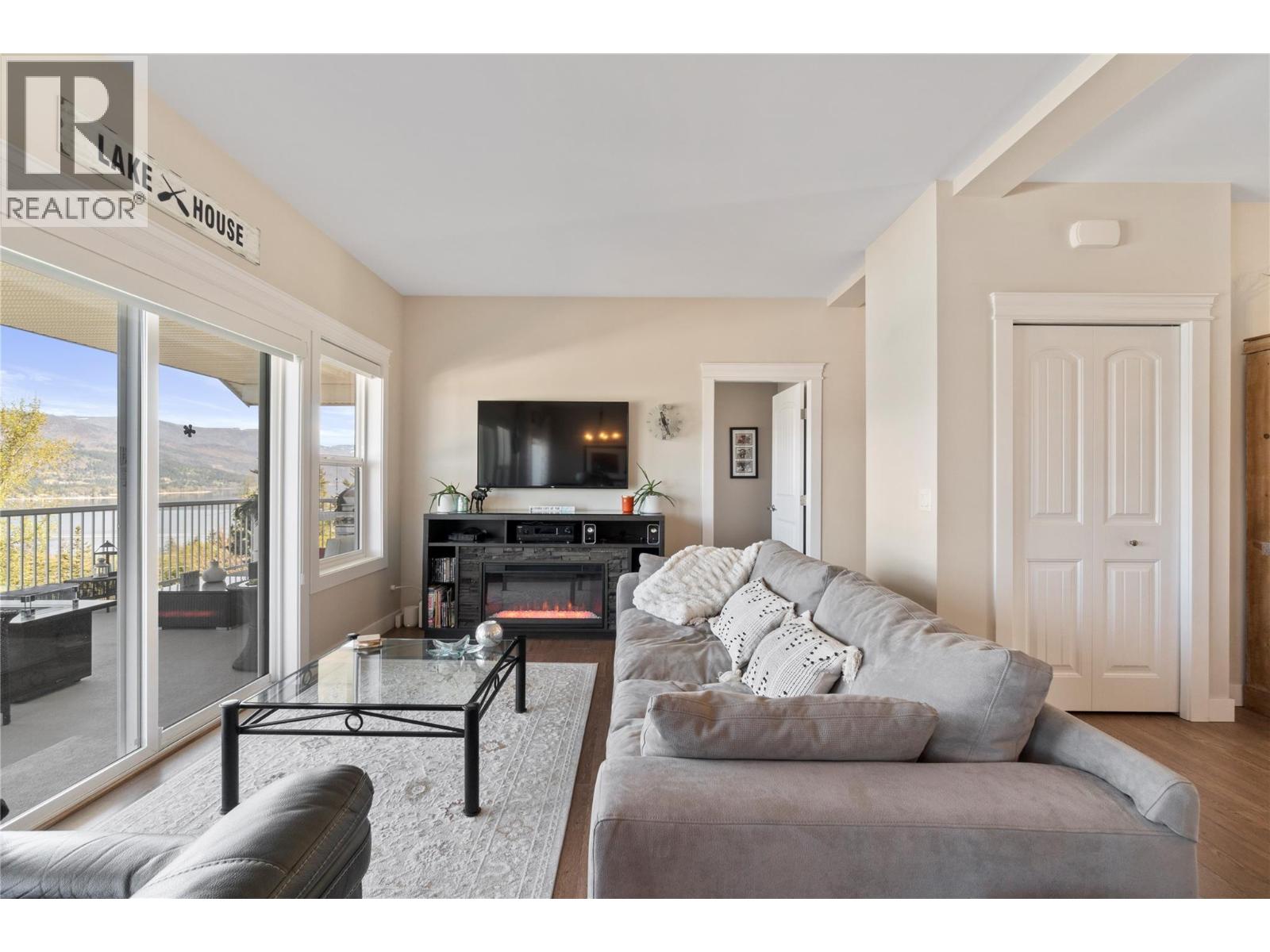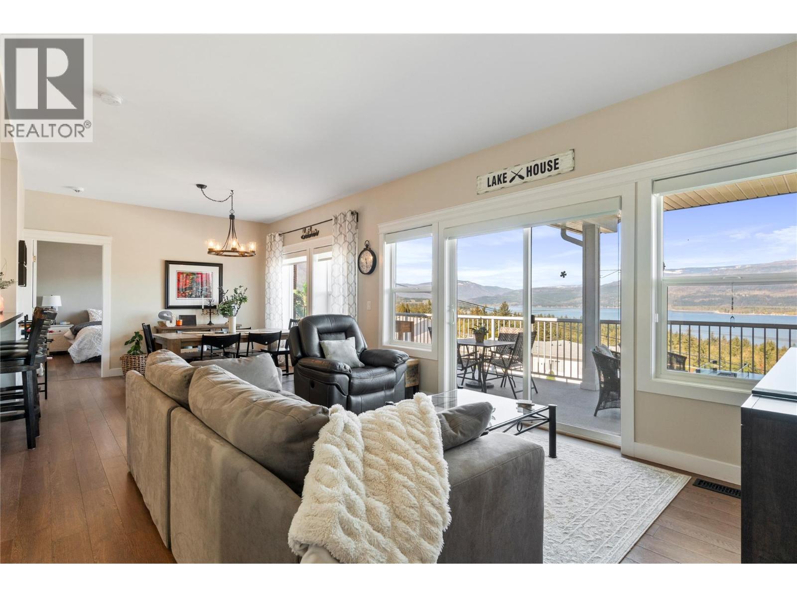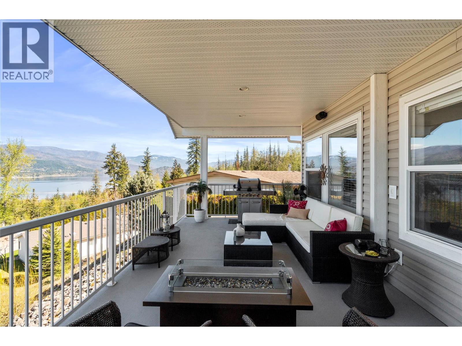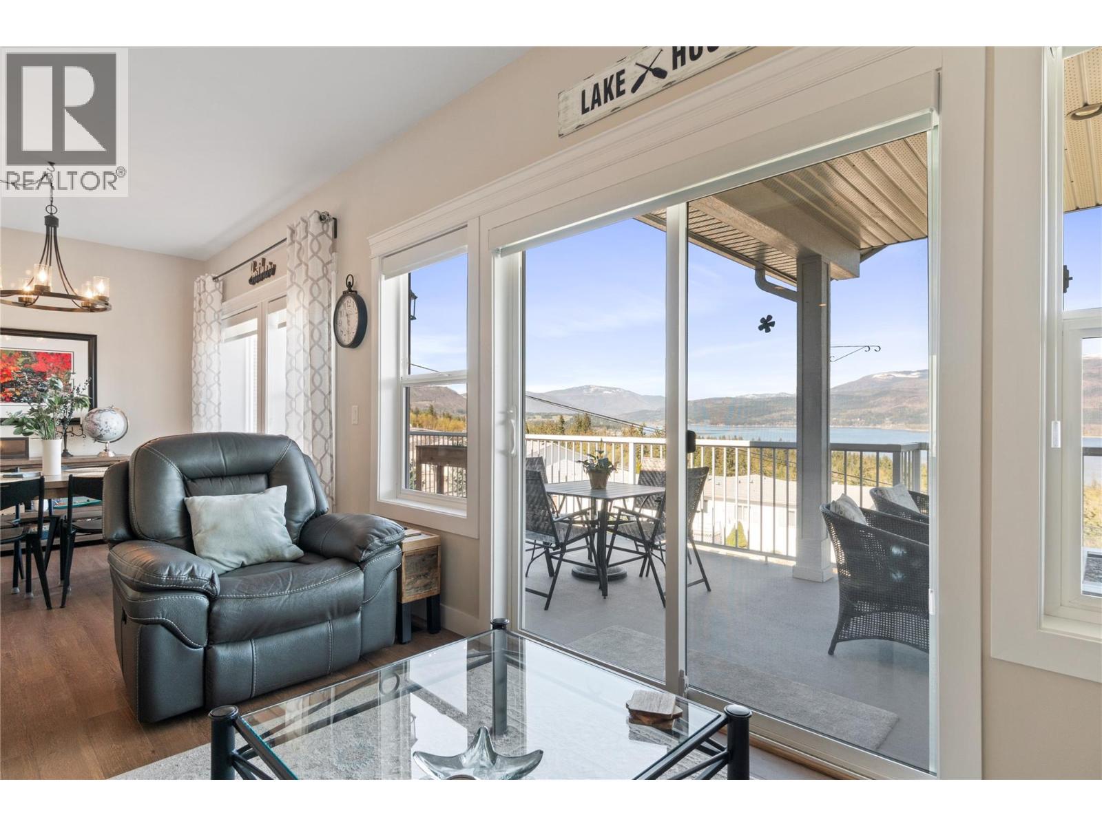 Breathtaking lake and mountain views from this meticulously maintained 2 bedroom, 2 bathroom modular home located in Sorrento's Deer Ridge Estates, a 55+ and quiet community. This home offers an excellent floorplan with bedrooms on opposite ends of the home and and open concept living room and kitchen. Enjoy your morning coffee on the large 50' wide partially-covered deck with panoramic views of Shuswap Lake. The spacious master bedroom features a full ensuite with a large walk-in glass shower. The bright kitchen is upgraded with stainless steel appliances, built-in microwave, and raised breakfast bar. The home, sitting on a full concrete crawl-space, is located on a quiet cul-de-sac and is just minutes from all necessities and recreation the Shuswap offers. Additional highlights include natural gas forced-air heating and air conditioning as well as a natural gas fire table on the deck, included in the sale. The 55+ park with friendly atmosphere allows pets, including dogs up to 10 kg (some restrictions apply). (id:25164)