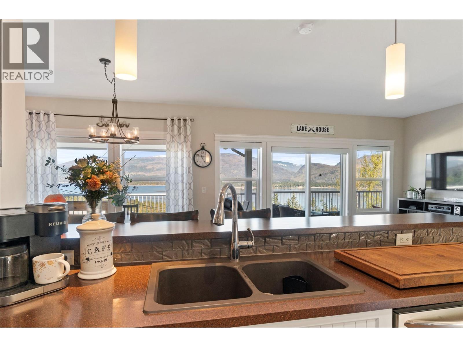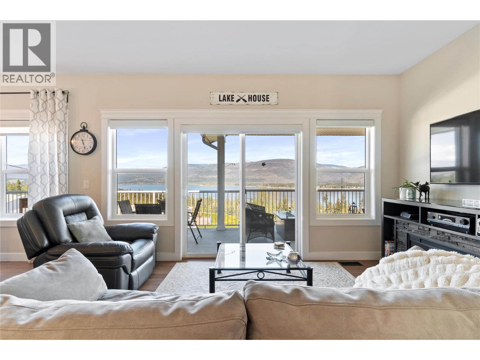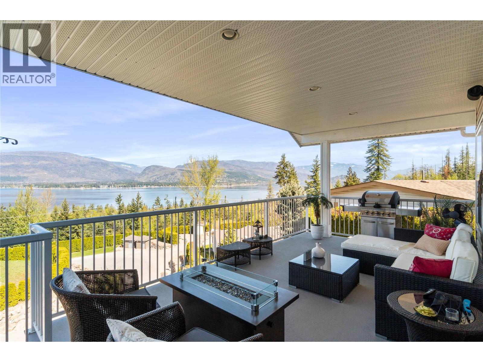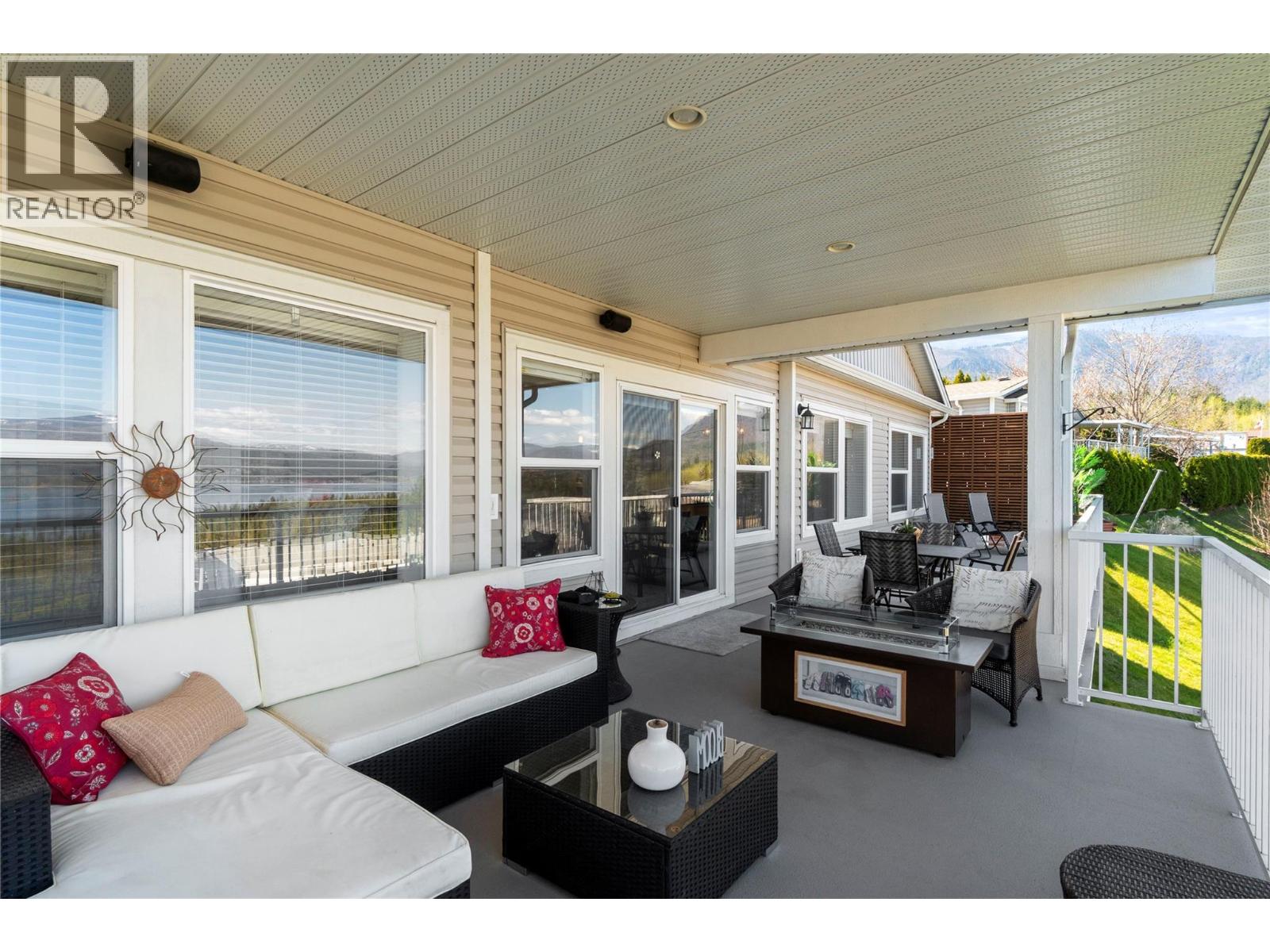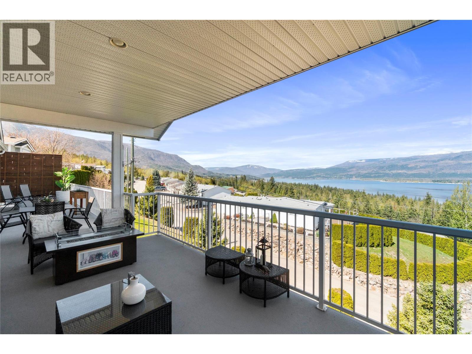 Breathtaking lake and mountain views from this meticulously maintained 2 bedroom, 2 bathroom modular home located in Sorrento's Deer Ridge Estates, a 55+ and quiet community. This home offers an excellent floorplan with bedrooms on opposite ends of the home and and open concept living room and kitchen. Enjoy your morning coffee on the large 50' wide partially-covered deck with panoramic views of Shuswap Lake. The spacious master bedroom features a full ensuite with a large walk-in glass shower. The bright kitchen is upgraded with stainless steel appliances, built-in microwave, and raised breakfast bar. The home, sitting on a full concrete crawl-space, is located on a quiet cul-de-sac and is just minutes from all necessities and recreation the Shuswap offers. Additional highlights include natural gas forced-air heating and air conditioning as well as a natural gas fire table on the deck, included in the sale. The 55+ park with friendly atmosphere allows pets, including dogs up to 10 kg (some restrictions apply). (id:25164)