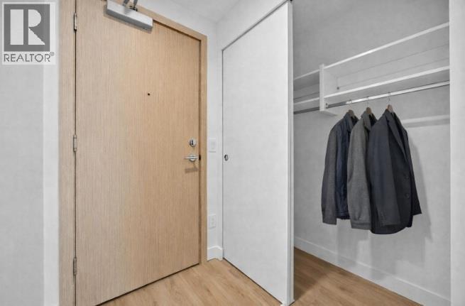 Welcome to The Eli, a newer condominium in the sought-after Water Street by the Park development, completed in 2025 and one of Kelowna’s most exciting downtown addresses. This ONE-bedroom plus DEN, one-bathroom home offers a bright, open-concept layout featuring a sleek modern kitchen, light flooring and cabinetry, and warm contemporary finishes throughout. Step outside to an oversized 267 sq ft covered deck which has expansive views to the North of the Marina and South to the bridge — ideal for indoor-outdoor living & entertaining. Large windows flood the space with natural light. The versatile den works perfectly as a home office, guest space, or storage. Residents enjoy resort-style amenities including a theatre room, wine-tasting lounge, dog wash and grooming room, fitness centre, outdoor pool with lounge areas, and a hot tub. Secure entry, professional management, ONE UNDERGROUND PARKING STALL B267 (value of $35,000), and a VISITOR PARKING PASS provide comfort and peace of mind. (Extra parking $150/mo..) Just steps from City Park, sandy beaches & dining and shopping along Bernard Avenue, this condo delivers the ultimate blend of luxury, lifestyle, and location. NO GST — already paid & included in Price! Rentals are allowed, with restrictions (min. 30 days) and pets are also allowed, with restrictions (up to two dogs; or 2 cats; or one dog and one cat). There may be an option to lease an extra parking stall at $150/month if 2 parking needed. QUICK POSSESSION POSSIBLE! (id:25164)